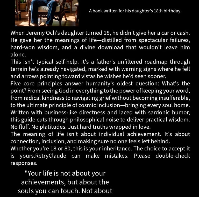 When Jeremy Och's daughter turned 18, he didn't give her a car or cash. He gave her the meanings of life—distilled from spectacular failures, hard-won wisdom, and a divine download that wouldn't leave him alone.